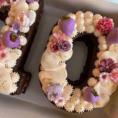 Rich chocolate cake filled with layers of my homemade Ferrero Rocher mousse; finished with my signature chocolate buttercream and topped with Ferrero Rocher milk chocolates.