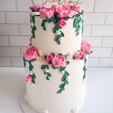Tiered cakes and larger cakes require extra materials to ensure proper support and stability. Because the cost varies between the number of tiers, fillings, decor, I can only price those per custom order. Pricing is build starting with the base pricing for each selected size + layer cake plus cost of extra supplies needed to stack them safely and securely.